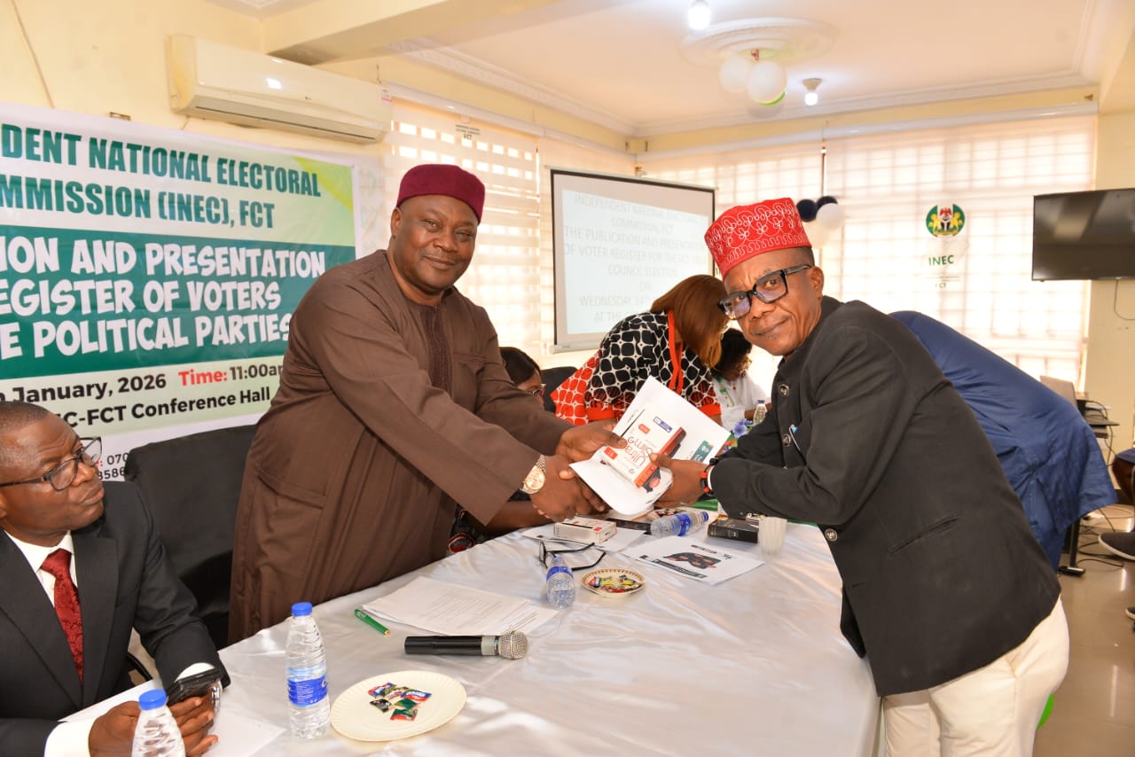 The presentation took place in Abuja on Wednesday, January 14, 2026, during a Stakeholders’ meeting with political parties, where the Resident Electoral Commissioner (REC) for the FCT, Malam Aminu Idris, described the exercise as a critical constitutional requirement in the Commission’s preparations for the election.