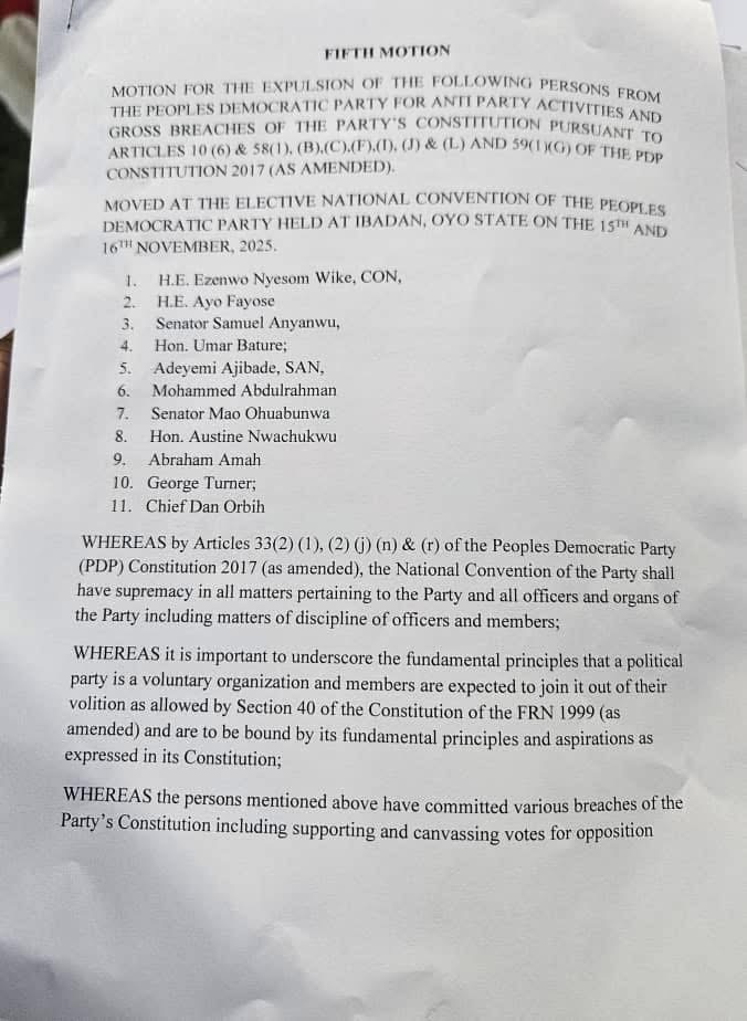 Their expulsion was initiated during the party’s ongoing national convention in Ibadan, Oyo State.