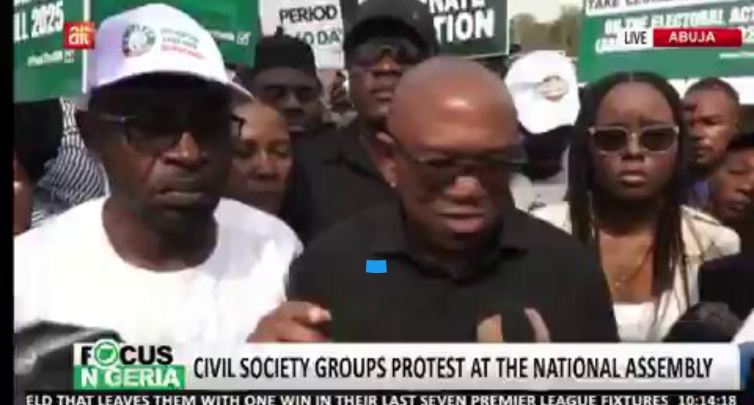 Obi, accompanied by several supporters including activist Aisha Yesufu, was present at the entrance of the National Assembly, where demonstrators demanded the inclusion of real-time electronic transmission of results from polling units in the Electoral Amendment Bill currently under consideration.