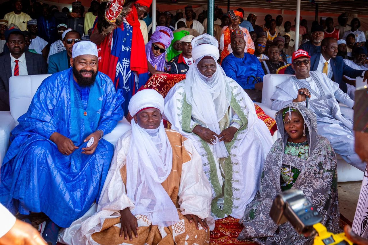 Niger State Governor, Mohammed Umaru Bago, popularly known as the “Farmer Governor,” led a state delegation to the turbaning ceremony of the Speaker of the Niger State House of Assembly, Abdulmalik Sarkindaji, who was conferred with the title of Dokajin Borgu, alongside other honourees.