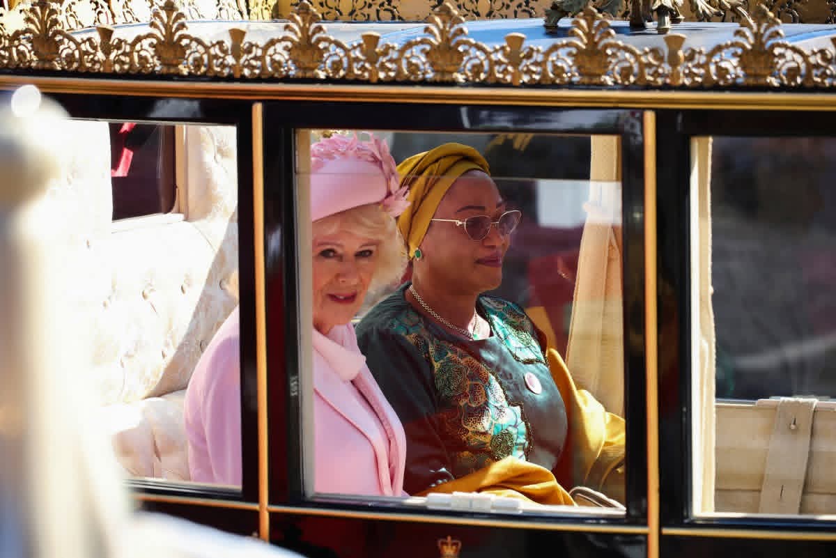 Britain’s Queen Camilla and Nigeria’s First Lady Oluremi Tinubu travel in the Scottish State Coach to Windsor Castle, in Windsor, on March 18, 2026, on the first day of a two-day State Visit to the United Kingdom by Nigeria’s President. (Photo by Chris Jackson / POOL / AFP)